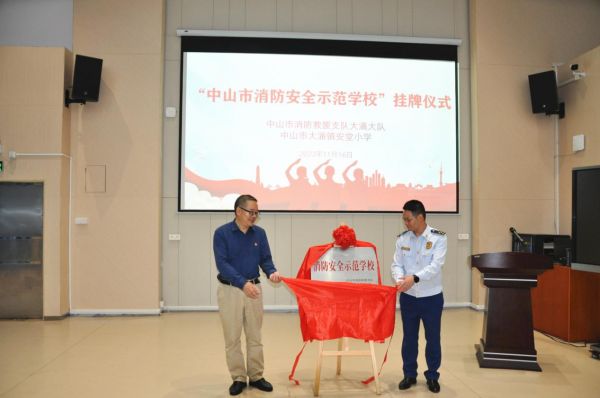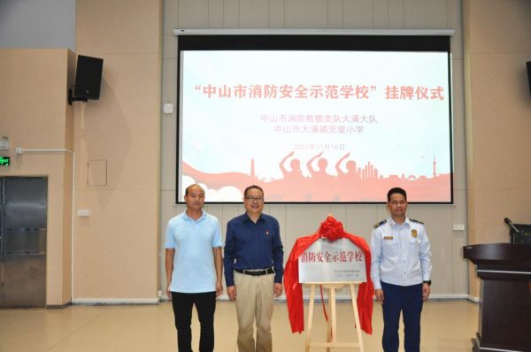 为进一步推进学校消防安全教育,探索开展消防宣传进学校活动,创新校园消防文化,引导和激励学生深入消防实践,11月16日下午,广东省中山市大涌镇安堂小学隆重举行了“消防安全示范学校”挂牌仪式,大涌镇首个“消防安全示范学校”正式成立。中山市消防救援支队大涌大队长叶海滨、安堂小学校长穆广宏共同参与了揭牌。