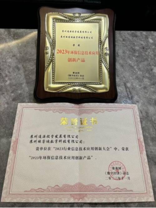 创新大会以“数实融合、赋能全场景服务”为主题,围绕数实结合,筑牢高质量发展底座,推广推动行业信息技术应用创新进行深度探讨和交流,对行业里优质产品、人物和企业进行了表彰。苏州通源投资发展有限公司(简称“苏州通源公司”)和苏州埃睿迪数字科技有限公司(简称“苏州埃睿迪”)共同荣获“2023环保信息技术应用创新产品奖”。