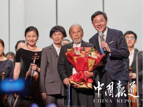“让我们掌声欢迎曹爷爷上台指挥。”当主持人王勇在现场念叨“曹爷爷”三个字时,现场气氛沸腾。虽然曹鹏已经99岁高龄了,但在家人的搀扶下,他依旧身姿挺拔,缓步登上了指挥台。用曹先生的话来说,那就是音乐可以创造奇迹。