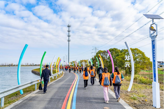 作为三地联盟之一此次活动,北桥街道从鹅真荡登科之路南端起点(冶长泾闸站)出发,至甘露大桥西桥堍停车场汇合,全程约4.2公里。