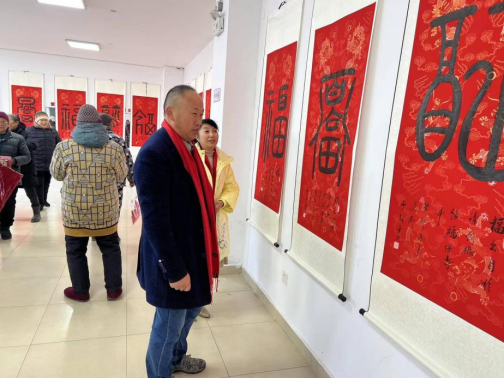 活动现场,一幅幅饱含情感的“福”字作品整齐悬挂,散发出浓郁的书卷气息,来往居民纷纷驻足欣赏,拍照留念。党员志愿者向大家介绍道:“福”字最早出现在甲骨文中,是向神明或祖先奉献的意思,它的涵盖面非常广,伴随中国几千年的历史文明的变迁与发展,如今已经渗透到了人们生活的点点滴滴中,它所折射出的是我们整个中华民族的生活观念及价值观。