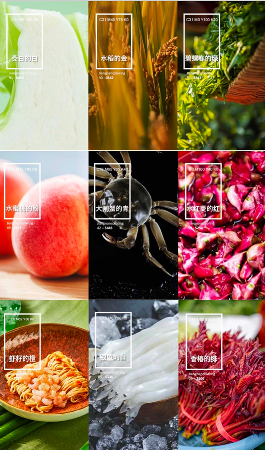 通过建立不同农业遗产色彩数据,分析其色调色域,运用色彩学规律,构建苏州锦绣江南鱼米之乡的可视化品牌体系。